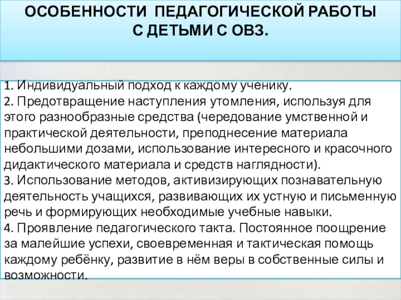 Слайд 19ОСОБЕННОСТИ ПЕДАГОГИЧЕСКОЙ РАБОТЫ