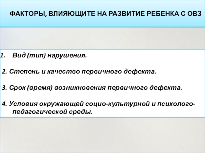 ФАКТОРЫ, ВЛИЯЮЩИТЕ НА РАЗВИТИЕ РЕБЕНКА С ОВЗ