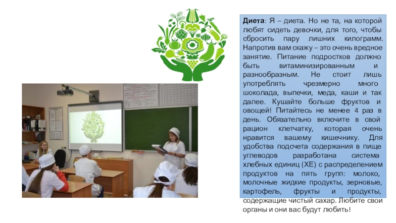 Слайд 16Диета: Я – диета. Но не та, на которой любят сидеть