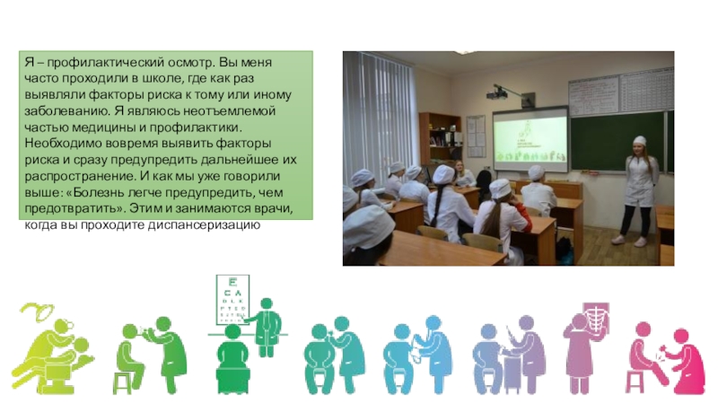 Слайд 18Я – профилактический осмотр. Вы меня часто проходили в школе, где