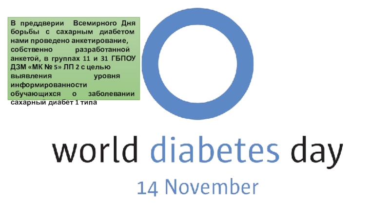 Слайд 3В преддверии Всемирного Дня борьбы с сахарным диабетом нами проведено анкетирование,