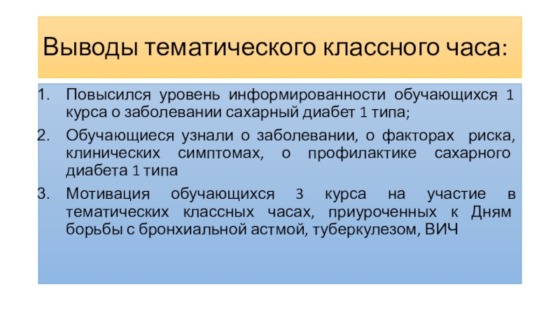 Мотивация обучающихся 3 курса на участие в тематических классных часах, приуроченных к Дням борьбы с бронхиальной астмой, туберкулезом, ВИЧ