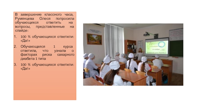 Слайд 21В завершение классного часа, Румянцева Олеся попросила обучающихся ответить на вопросы,