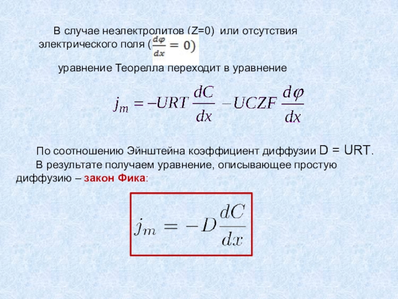 В результате получаем уравнение, описывающее простую диффузию – закон Фика: