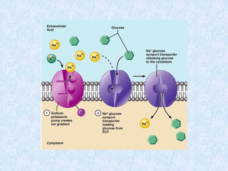 совместный однонаправленный перенос ионов с участием двухместного переносчика. Например, катион и анион – при этом МП не изменяется, движущая сила – разность концентраций одного из ионов.