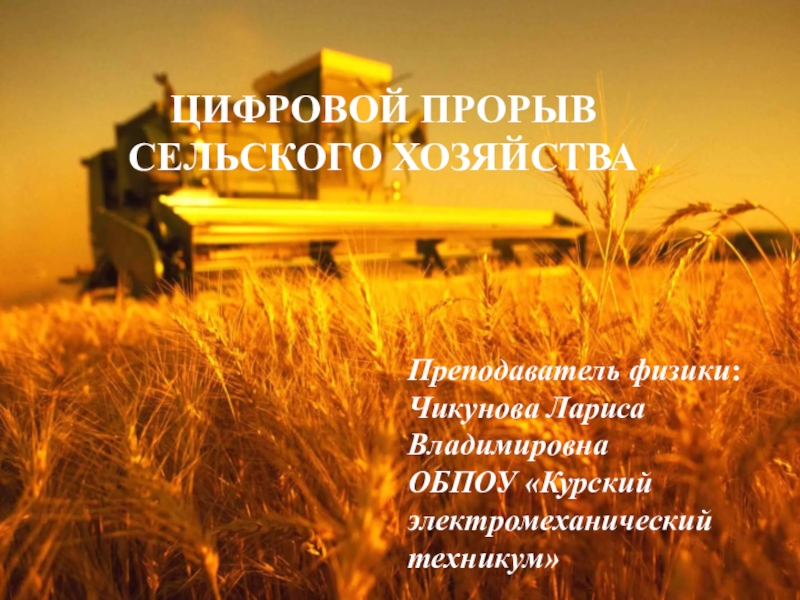 ЦИФРОВОЙ ПРОРЫВ СЕЛЬСКОГО ХОЗЯЙСТВАПреподаватель физики: Чикунова Лариса ВладимировнаОБПОУ «Курский электромеханический техникум»