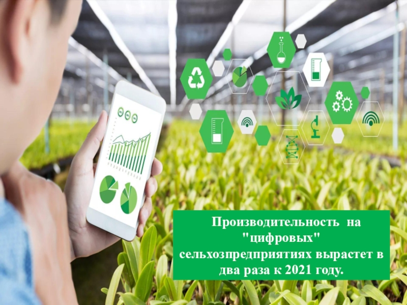 Слайд 3Производительность на "цифровых" сельхозпредприятиях вырастет в два раза к 2021 году.