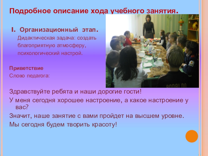 Дидактическая задача: создать творческую атмосферу для практической работы учащихся по