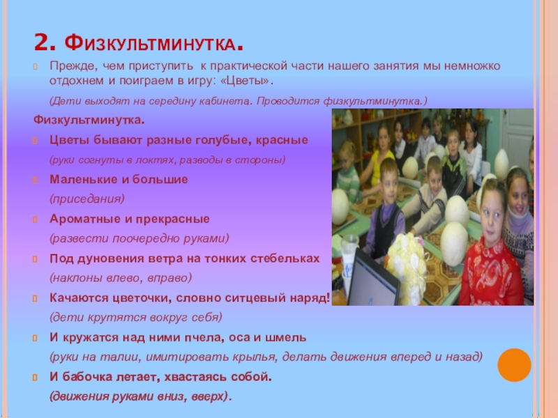 мы немножко отдохнем и поиграем в игру: «Цветы».