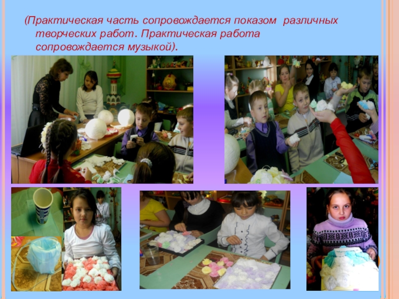 Слайд 20(Практическая часть сопровождается показом различных творческих работ. Практическая работа сопровождается музыкой).