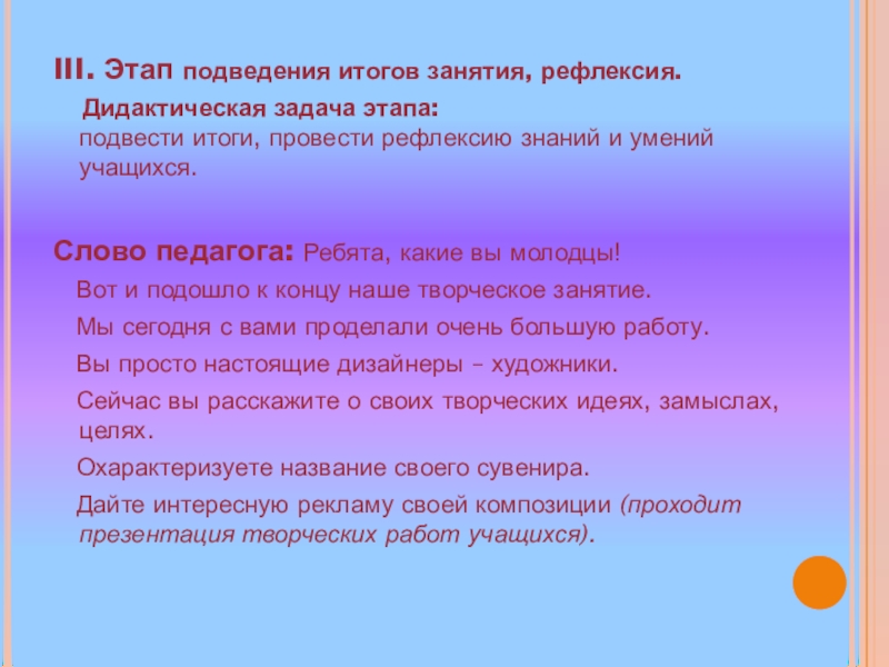 Слайд 22III. Этап подведения итогов занятия, рефлексия.