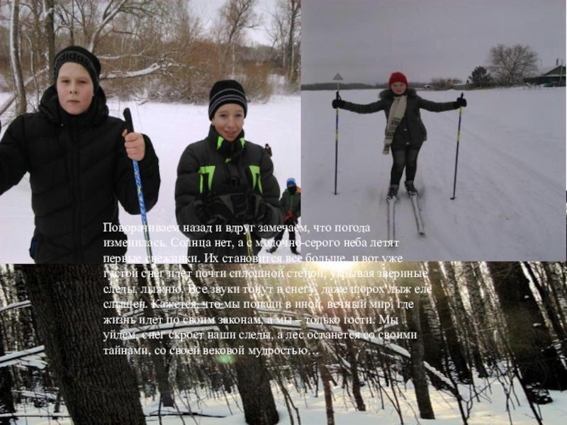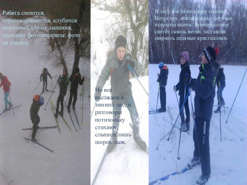 Но вот въезжаем в зимний лес, и разговоры потихоньку стихают, слышен лишь шорох лыж.