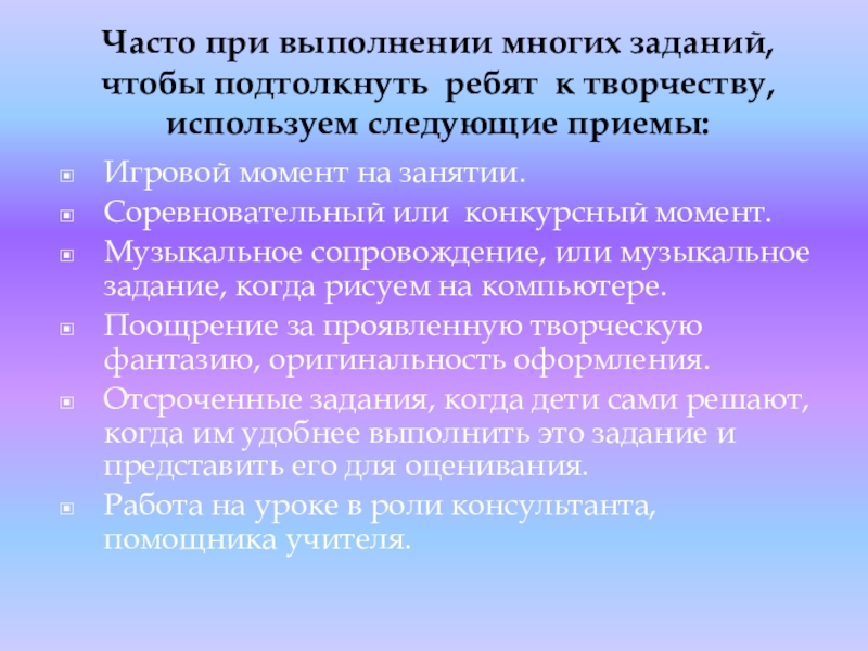 Музыкальное сопровождение, или музыкальное задание, когда рисуем на компьютере.