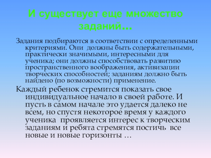 Отсроченные задания, когда дети сами решают, когда им удобнее выполнить это задание и представить его для оценивания.