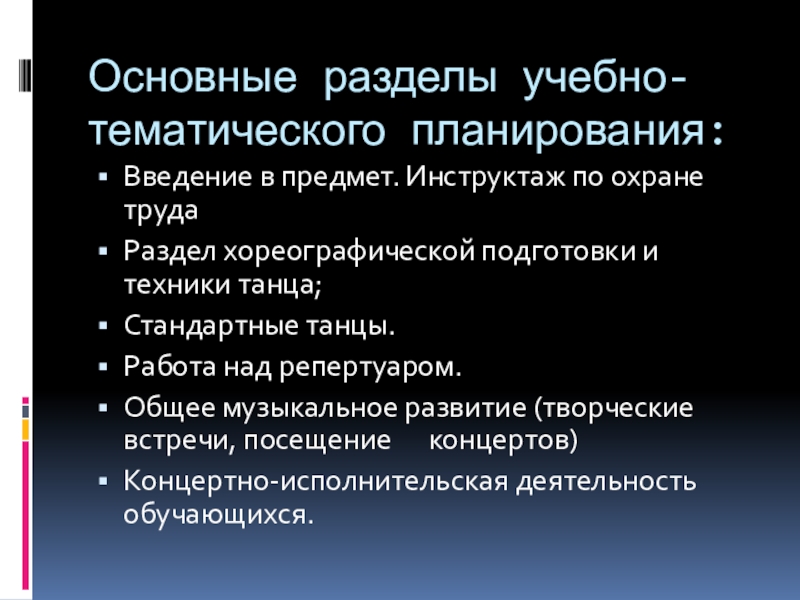 (выбор танца и композиций, музыки для танца в соответствии с индивидуально-возрастными особенностями и исполнительскими возможностями обучающихся)