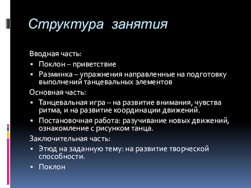 Постановочная работа: разучивание новых движений, ознакомление с рисунком танца.