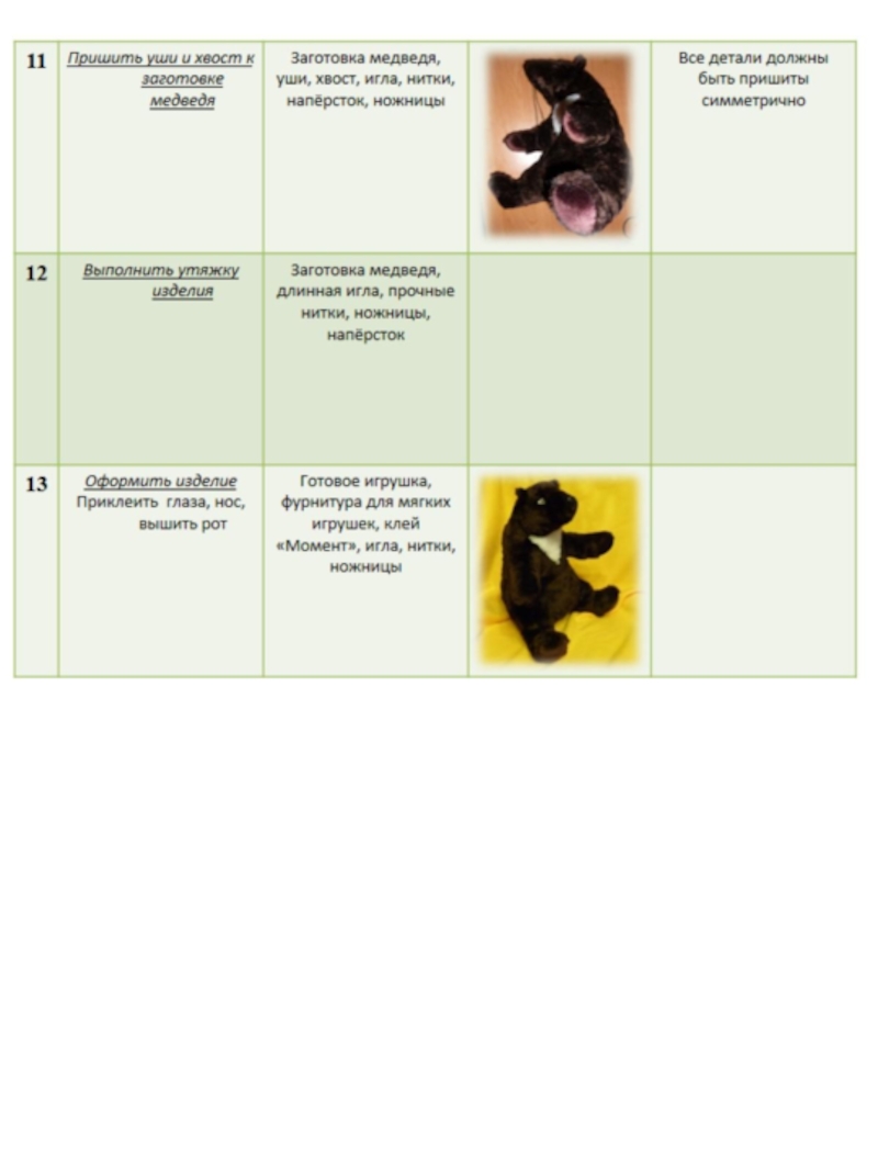 6. Изготовление медведицы Инструкционно-технологическая карта изделия