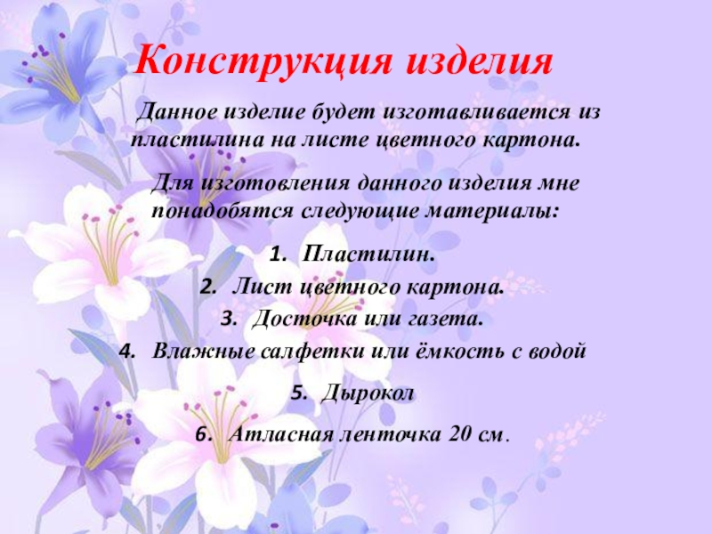 изготовления данного изделия мне понадобятся следующие материалы: