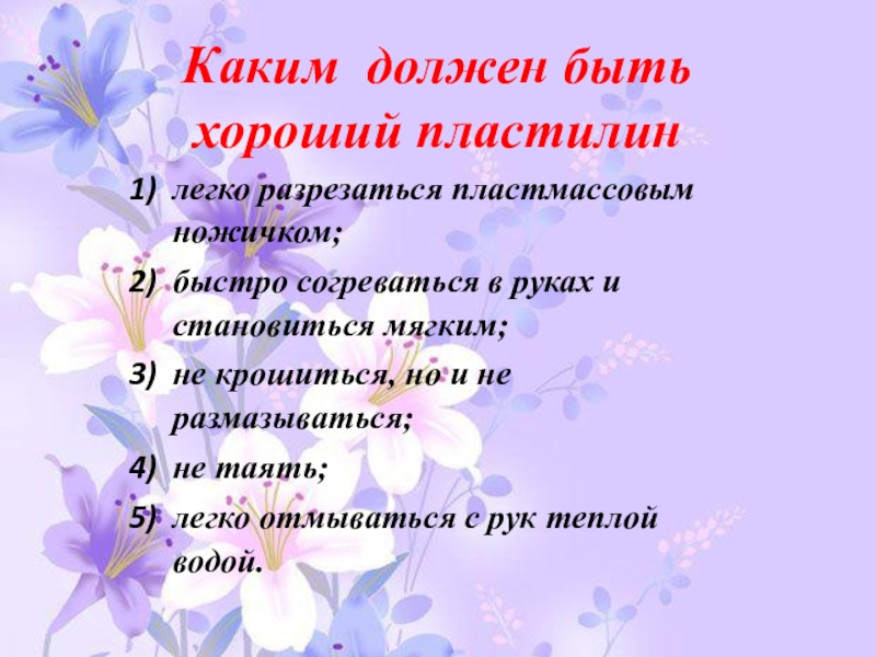 Слайд 7Каким должен быть хороший пластилин