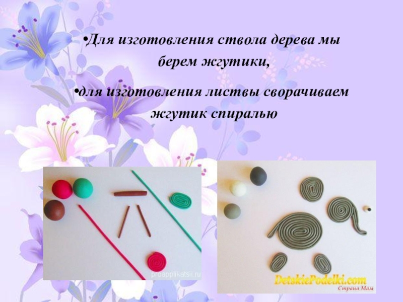 Слайд 18Для изготовления ствола дерева мы берем жгутики,