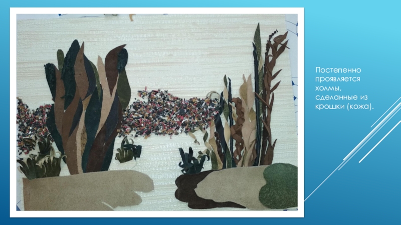 Слайд 6Постепенно проявляется холмы, сделанные из крошки (кожа).