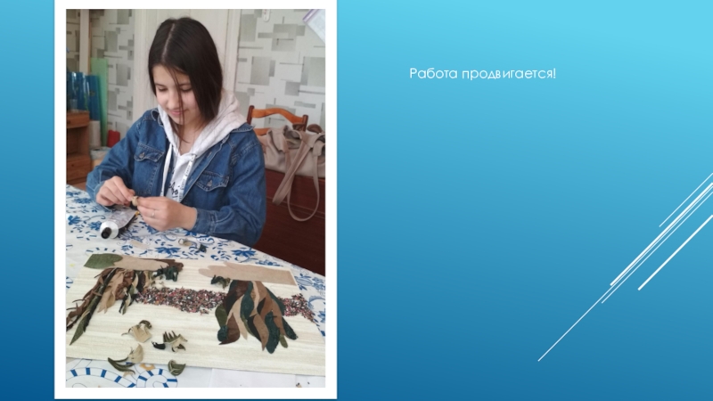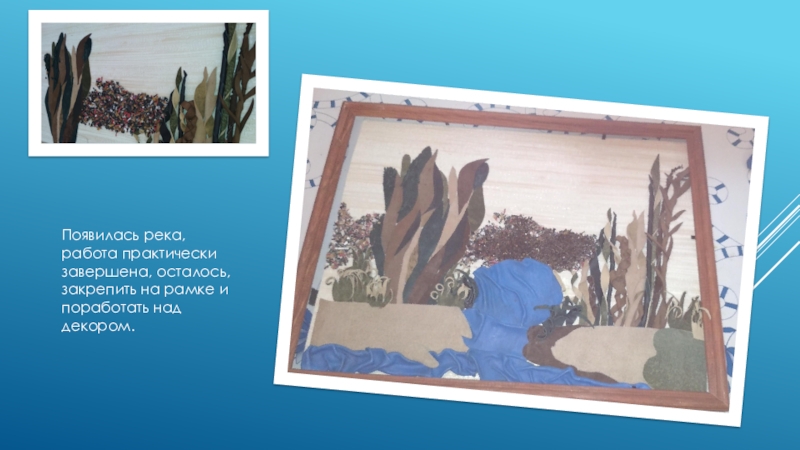 Слайд 7Появилась река, работа практически завершена, осталось, закрепить на рамке и поработать
