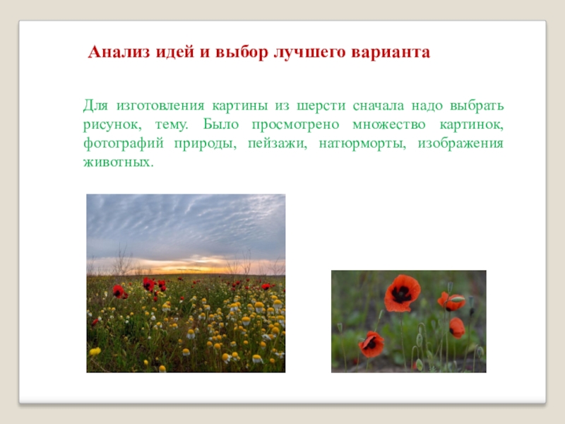Слайд 5Для изготовления картины из шерсти сначала надо выбрать рисунок, тему. Было
