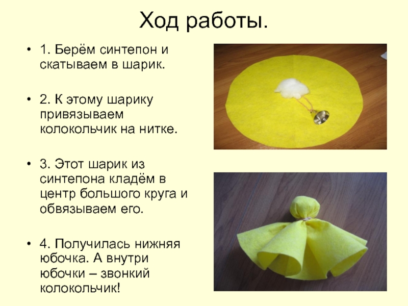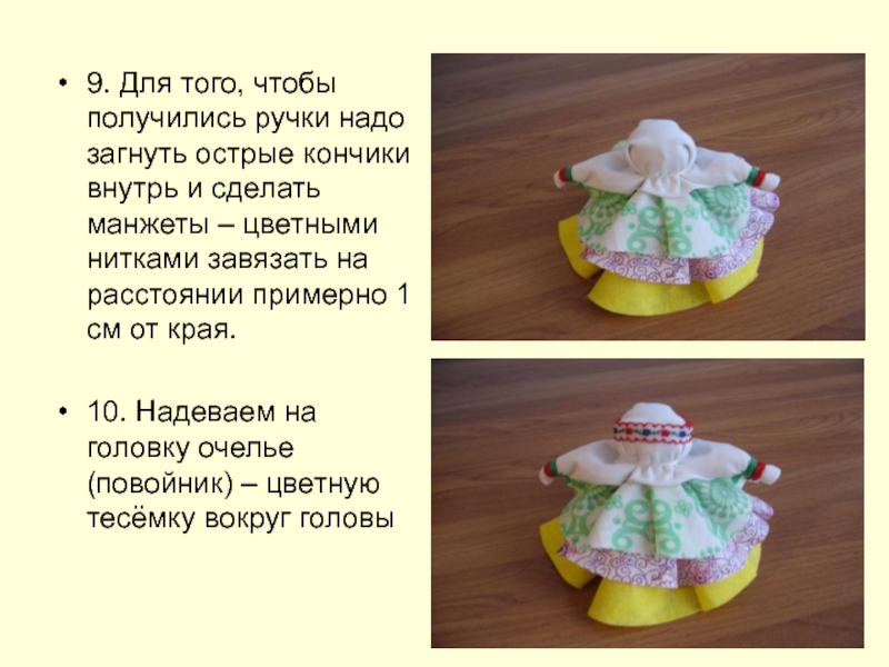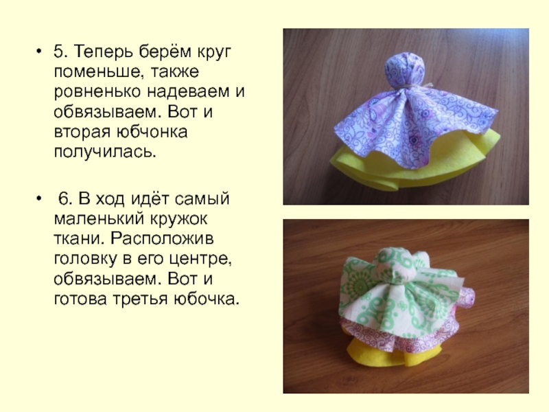 6. В ход идёт самый маленький кружок ткани. Расположив