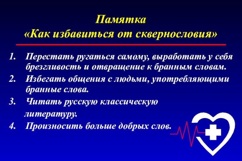 Первый – зная, что это плохо, продолжать нецензурно выражаться, тем самым включить программу самоуничтожения.