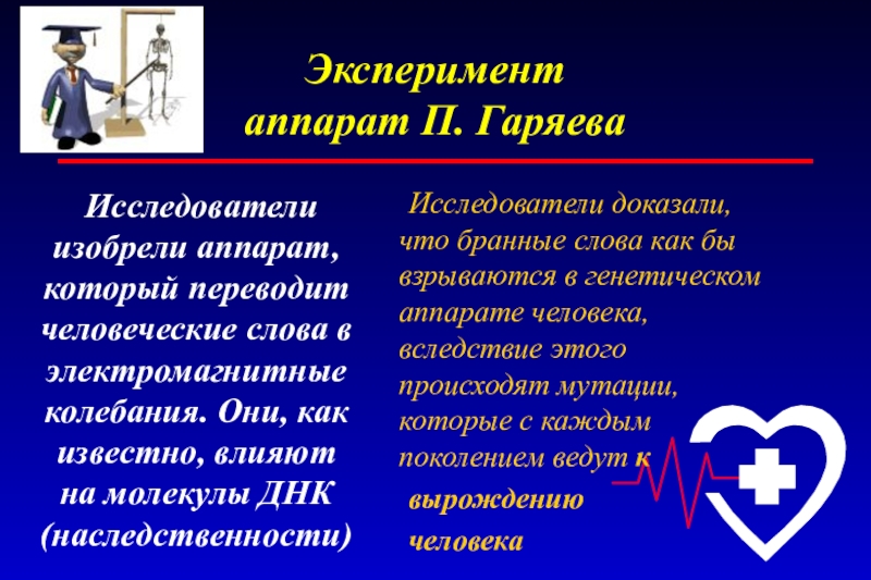 Исследователи доказали, что бранные слова как бы взрываются в генетическом аппарате человека, вследствие этого происходят мутации, которые с каждым поколением ведут к
