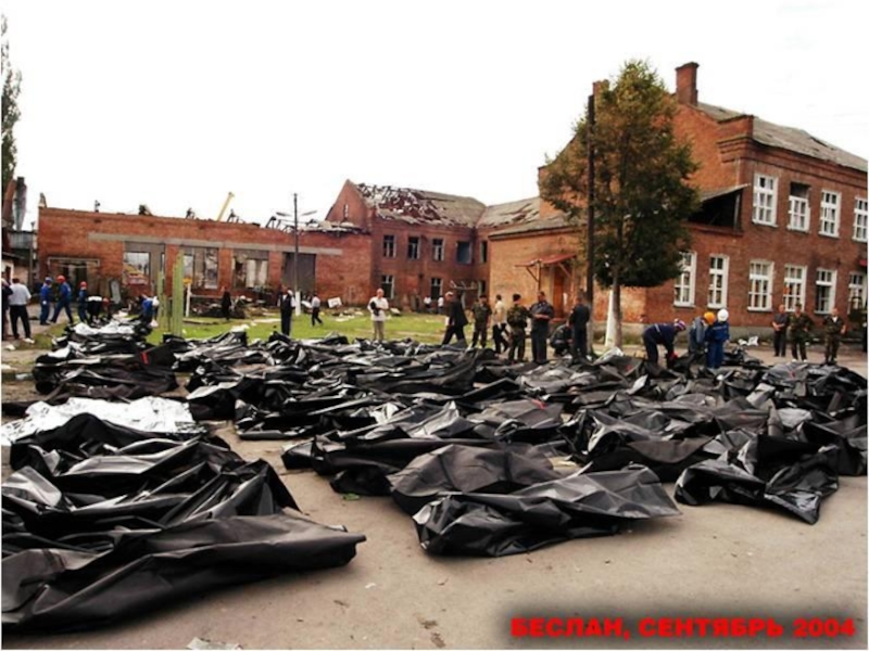 Слайд 20В результате террористического акта в городе Беслане в школе№1 погиб 331