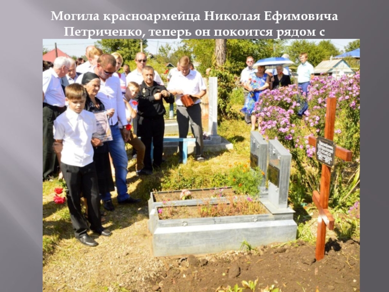 Слайд 9Могила красноармейца Николая Ефимовича Петриченко, теперь он покоится рядом с родителями
