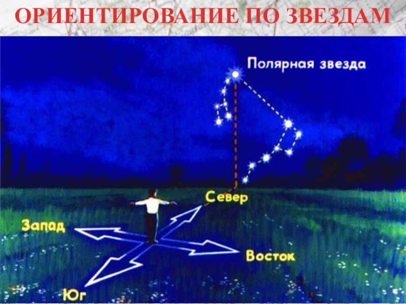 Слайд 5ОРИЕНТИРОВАНИЕ ПО ЗВЕЗДАМ