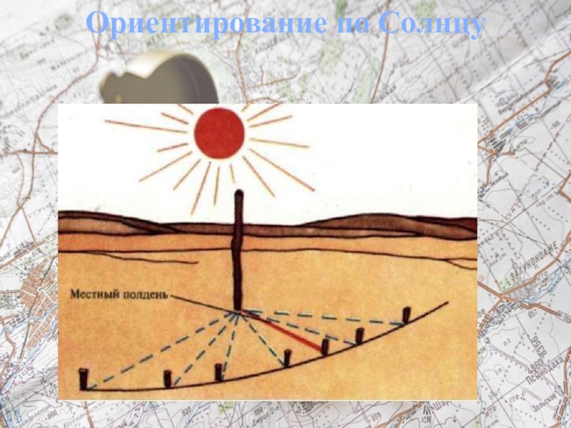 Слайд 3Ориентирование по Солнцу