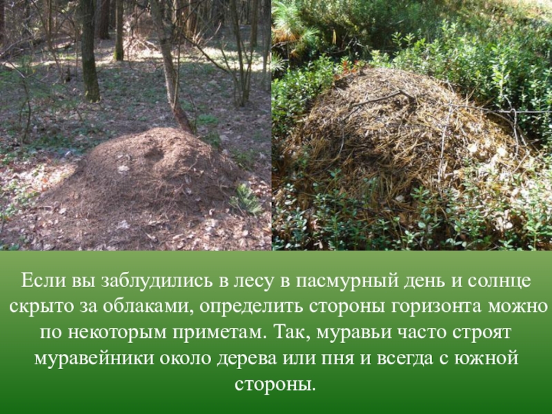 Слайд 8Если вы заблудились в лесу в пасмурный день и солнце скрыто
