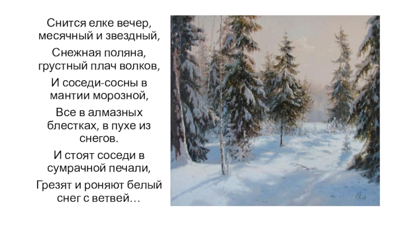 Но господь очень любит скромность, смирение и простоту, и принимает их как лучшие дары Себе. На изумленную Елочку вдруг хлынул с небес звездный дождь, и она засверкала, украшенная звездами, стала вдруг краше всех деревьев…