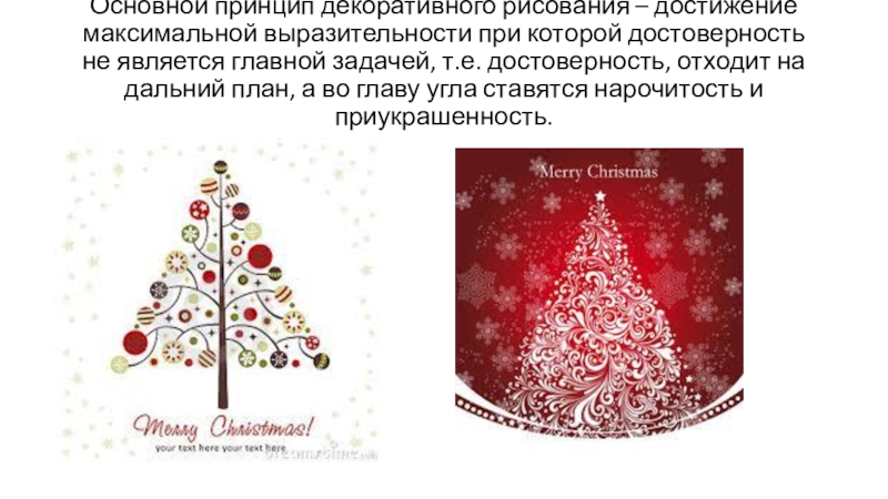 Слайд 11Основной принцип декоративного рисования – достижение максимальной выразительности при которой достоверность