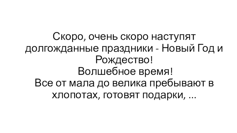 Слайд 6Скоро, очень скоро наступят долгожданные праздники - Новый Год и Рождество!