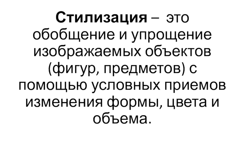 обобщение и упрощение изображаемых объектов (фигур, предметов) с