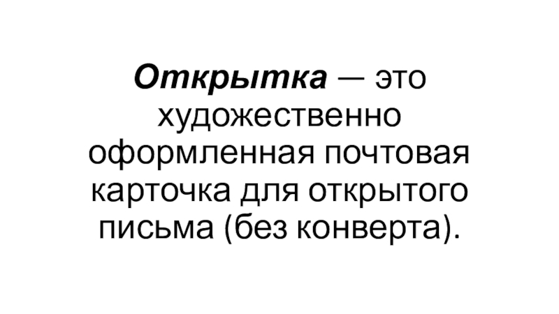 Слайд 2Открытка — это художественно оформленная почтовая карточка для открытого письма (без конверта).