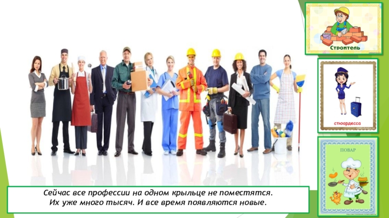 Слайд 8Сейчас все профессии на одном крыльце не поместятся.
