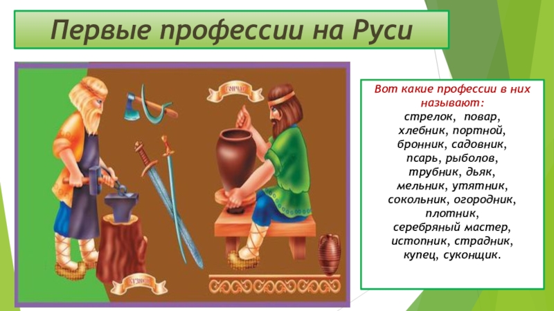 стрелок, повар, хлебник, портной, бронник, садовник, псарь, рыболов, трубник, дьяк, мельник, утятник, сокольник, огородник, плотник,
