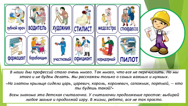 Слайд 20В наши дни профессий стало очень много. Так много, что все