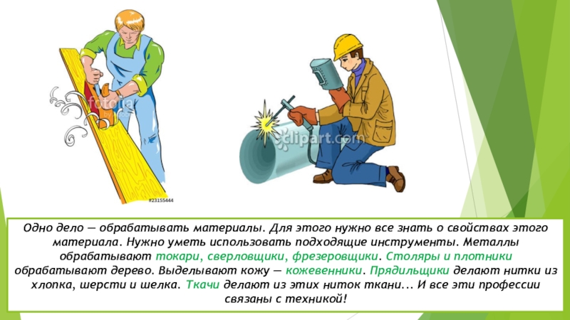 Слайд 15Одно дело — обрабатывать материалы. Для этого нужно все знать о