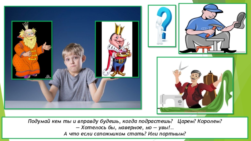Слайд 21Подумай кем ты и вправду будешь, когда подрастешь? Царем? Королем?
