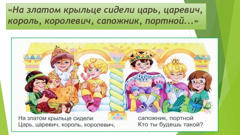 Слайд 3«На златом крыльце сидели царь, царевич, король, королевич, сапожник, портной...»