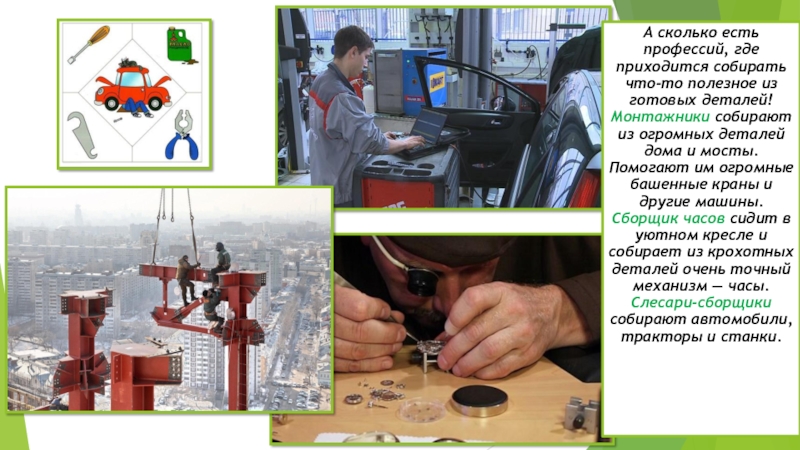 Слайд 16А сколько есть профессий, где приходится собирать что-то полезное из готовых