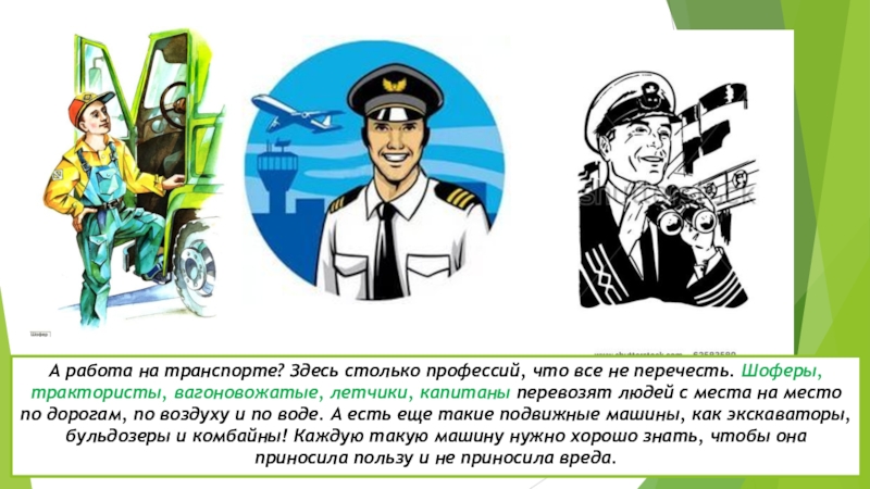Слайд 17А работа на транспорте? Здесь столько профессий, что все не перечесть.