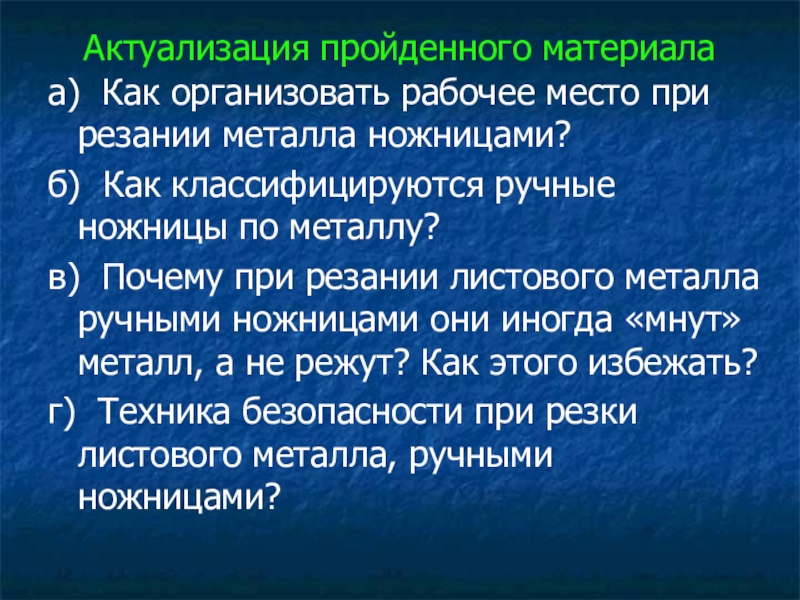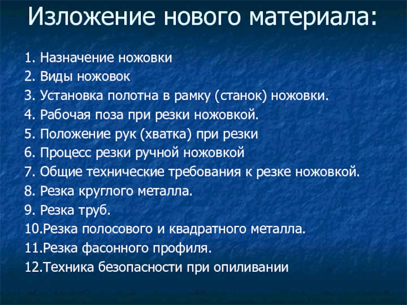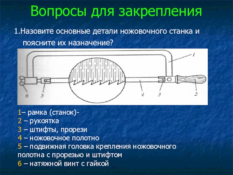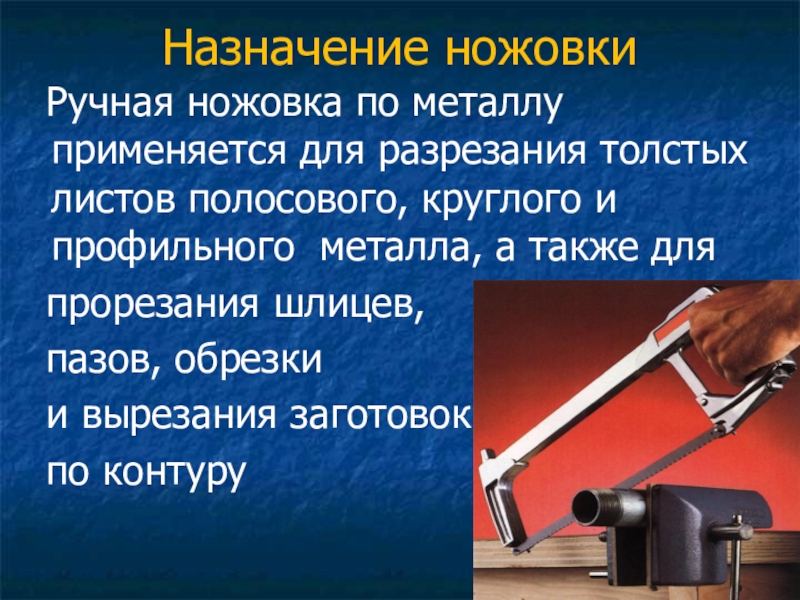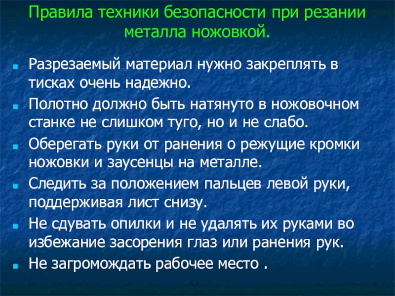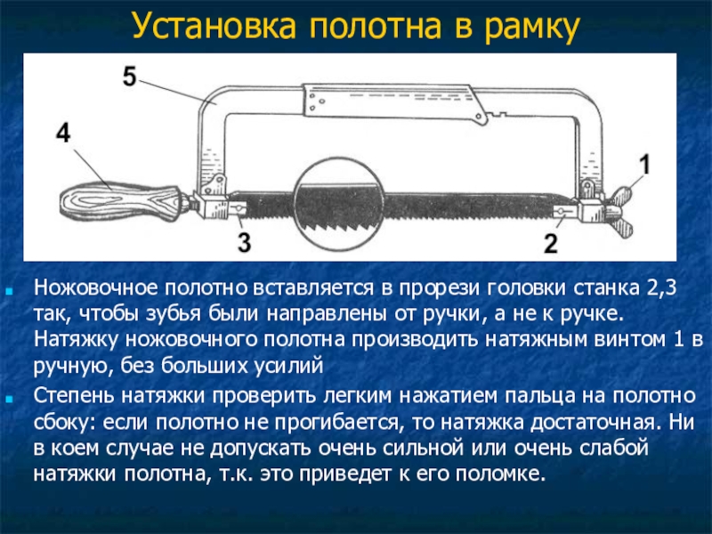 4. Почему запрещается выполнять резание металла со слабо или сильно натянутым полотном ножовки?