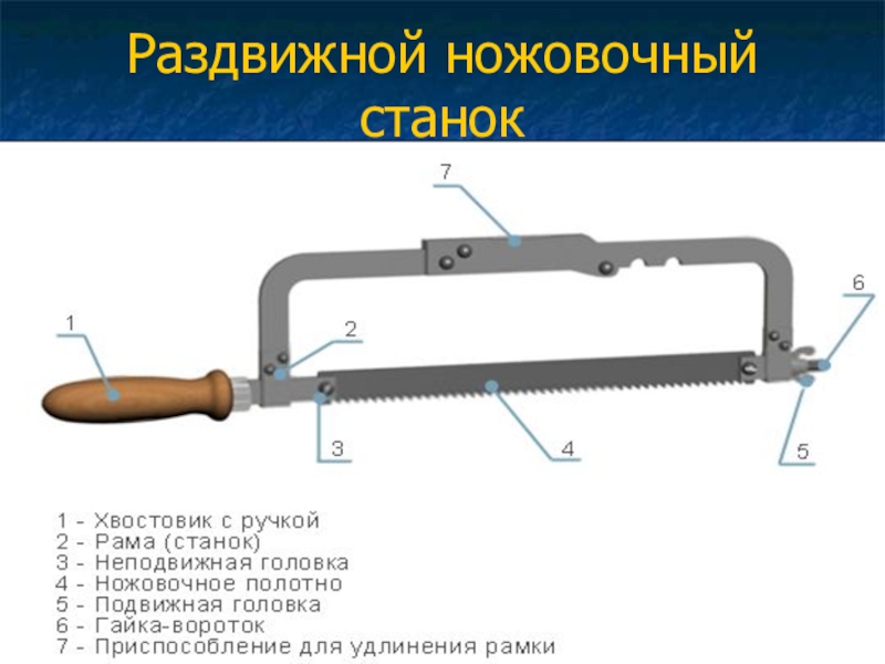 5 – подвижная головка крепления ножовочного полотна с прорезью и штифтом